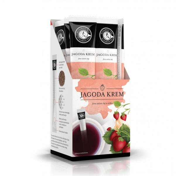 A Schargo Tea eperkrém gyümölcstea innovatív, egyadagos, kompakt kiszerelésű filteres tea. Kibontást követően a teával töltött filtert csak forró vízbe kell tenni és keverni. Csomagolása praktikussá teszi fogyasztását a vendéglátásban, munkahelyen vagy akár otthon is. Fogyasztható hidegen és melegen egyaránt. 16 adag/doboz (2g/filter) Összetevők: Alma, hibiszkusz, eper 5%, eperkrém aroma 1,5%, krémkaramell aroma 1%, csipkebogyó, narancshéj, krémpor 0,5% Allergén: TEJ Nettó súly: 32g